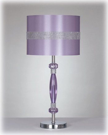 - Includes 1 lampLight purple acrylic and Silvered metalDecorative drum shadeOn/off switch60 watts max.Color: PurpleMaterial: Metal11 in. L x 11 in. W x 23.75 in. H (4 lbs)